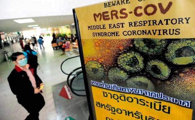一名泰國男子路過曼谷郊區(qū)暖武里府一家傳染病研究所的標示牌,上面寫著有關(guān)中東呼吸綜合征的信息。